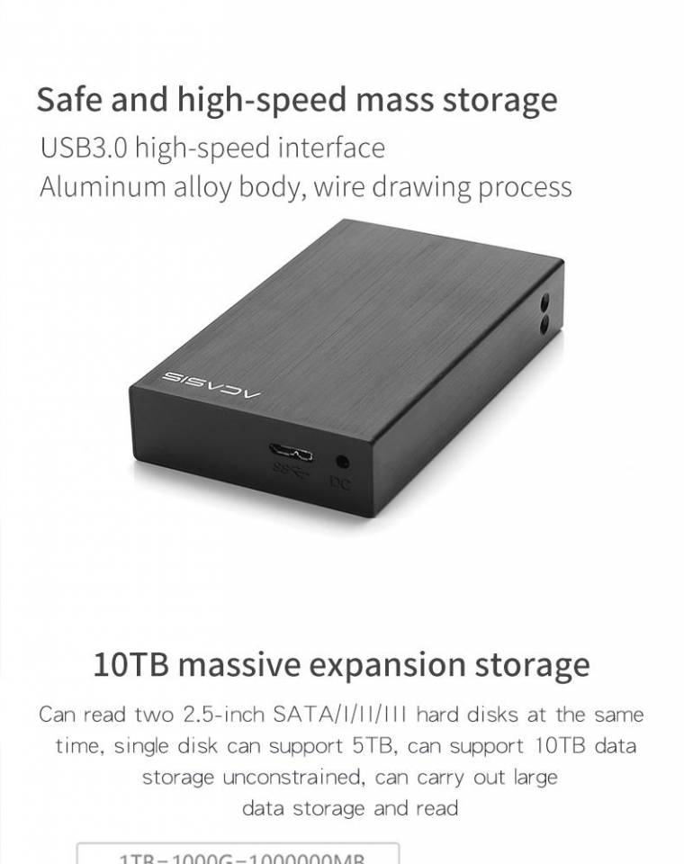 Thông số kỹ thuật của mảng đĩa ACASIS Hộp đĩa cứng kép usb3.0 2,5 inch Hộp đĩa cứng di động máy tính xách tay hộp đựng đĩa đôi đĩa cứng với chức năng RAID